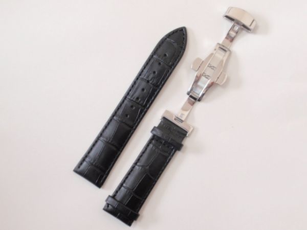 - 送料無料 腕時計 交換用ベルト クロコダイル型押し 牛本皮バンド 黒 22mm