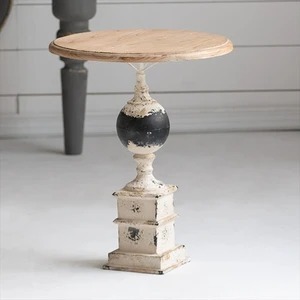 - モダンアンティーク調 シャビーホワイトブラッシュブラックアイアンアンティーク調サイドテーブル 花台