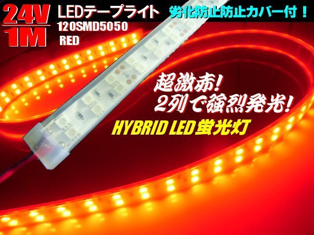 > メール便可 切断可 2列発光 LED テープライト 赤/レッド 防水カバー付 蛍光灯 5050 LED ライト 24V 1M/航海灯 船舶 照明 トラック F