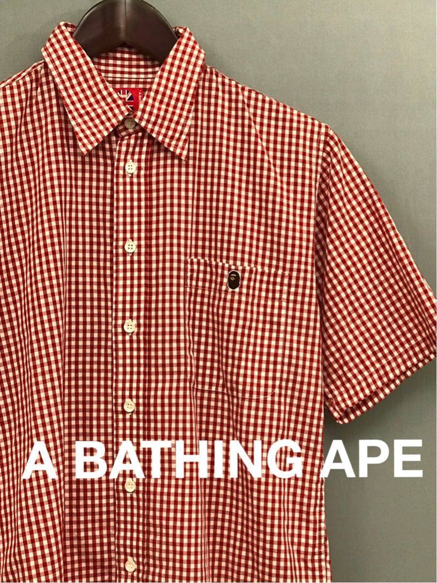 > A BATHING APE アベイシングエイプ 半袖 ギンガムチェック シャツ メンズ Sサイズ ファッション !★