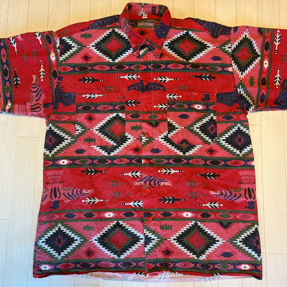 - engbers 総柄 柄シャツ オルテガ 民族柄 レトロ アート ビンテージ 半袖シャツ