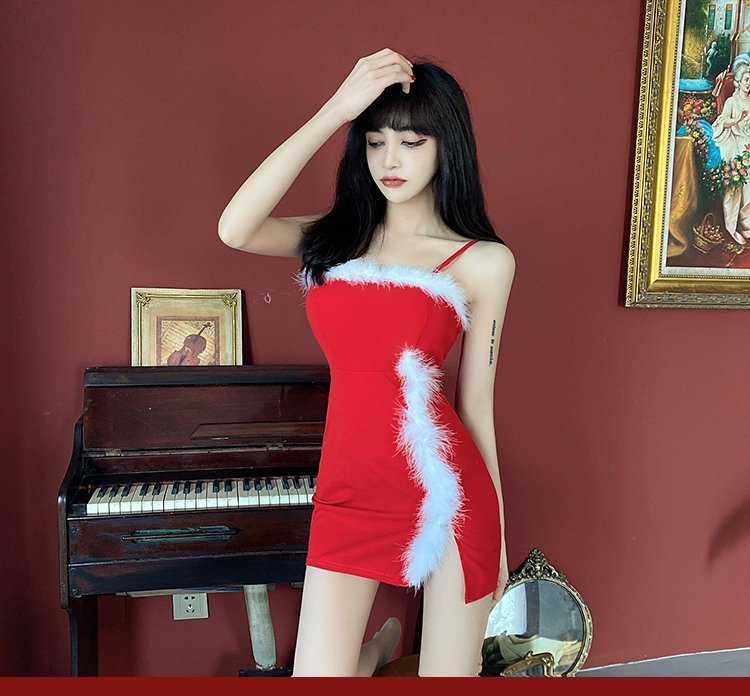 > HSM890★新作秋冬 選べる/Lサイズ「S~XLサイズ」ファッション クリスマス セクシー スリット 可愛いノースリーブワンピース 赤