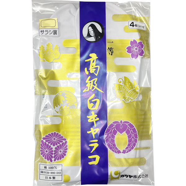 - 楽屋足袋 一等高級白キャラコ ブロード足袋 白 サラシ裏 22.0cm 4枚コハゼ ホワイト