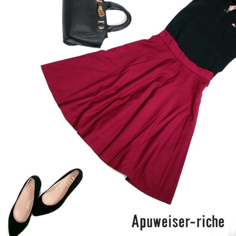 - 美品 アプワイザーリッシェ Apuweiser-riche 秋 冬 ポリエステル スーツ ミモレ丈 フレアスカート 0 ダークレッド 赤 ワイン ダークカラー