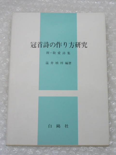 - 温井禎祥/冠首詩 の 作り方 研究/白鴎社/平成3年 初版/附・敬愛詩集/稀少 レア