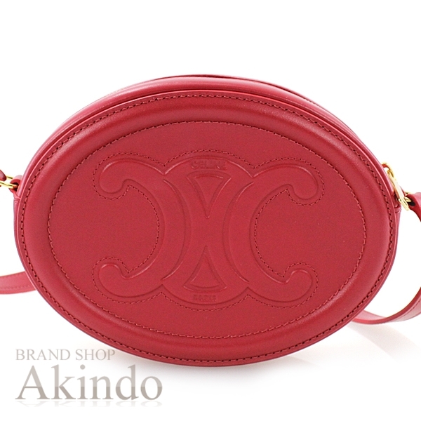 - 【新品】セリーヌ ショルダーバッグ トリオンフ クロスボディ オーバルパース キュイル レッド 赤 レザー 10I703DPQ.27ED CELINE