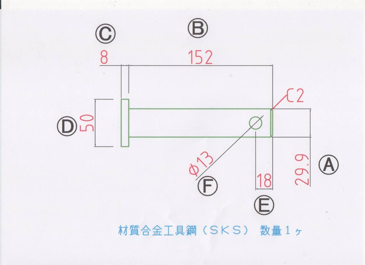 - NO300 φ30用 ツバ下152mm バケットピン 1本