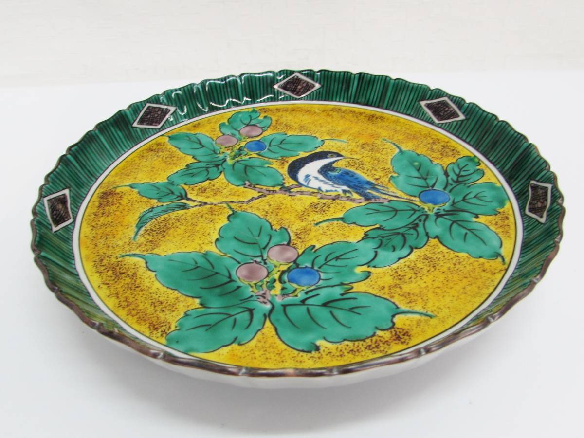 - 九谷焼 峰仙作 黄色 鳥図 直径25㎝ 返品OK 65