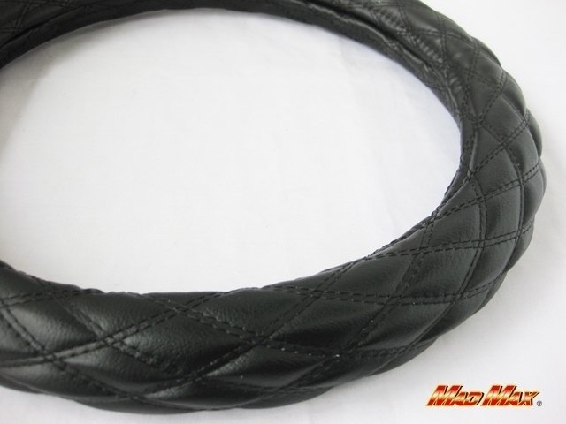 - 【送料800円】トラック用品 国産ソフトレザー ブラック/ブラック ダブルステッチ ハンドルカバー LS/ステアリングカバー