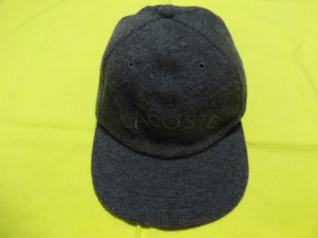 > ●ラコステ フランネル キャップ グレー 58cm フリー ウール 帽子 ロゴキャップ 折りたためる サイズ調整可 日本製
