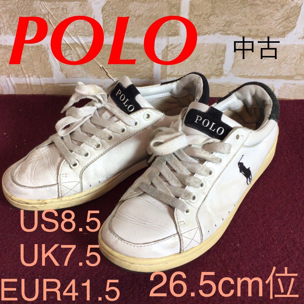 > 【売り切り!送料無料!】A-113 POLO!スニーカー!白!US8.5 UK7.5 EUR41.5 26.5cm位!普段履き!傷汚れあり!中古!