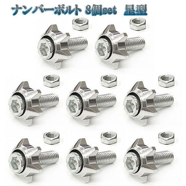 > ナンバー フェンダー ボルト 星型 盗難防止 M6 ボルト カラーワッシャー 同色 8個set 車 汎用 外装 ドレスアップ シルバー