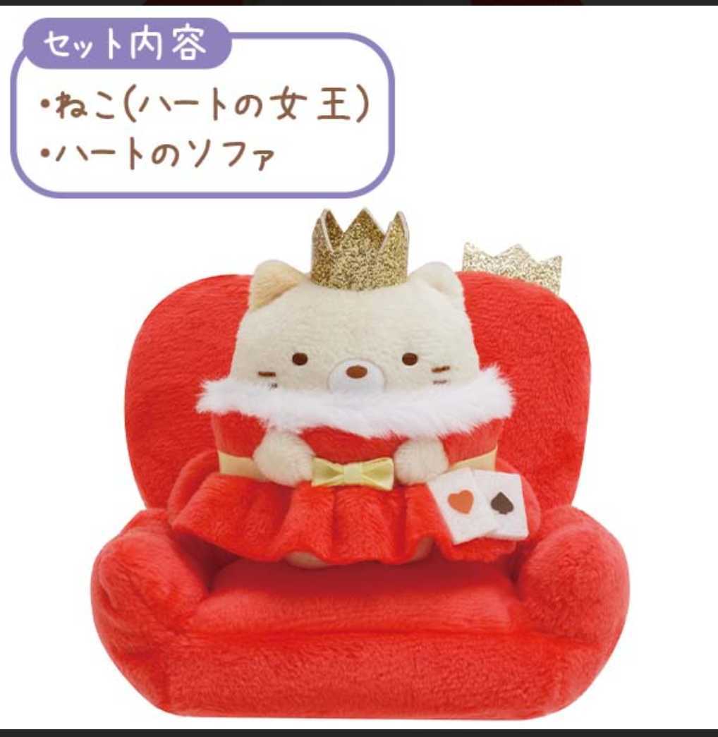 - ☆すみっコぐらし ふしぎの国のすみっコ ねこ(ハートの女王)ハートのソファ 新品 てのりぬいぐるみセット (アリス)