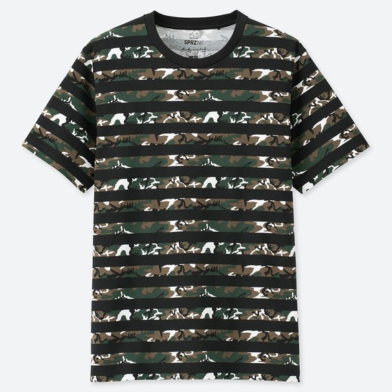 - 2019アート ユニクロ×アンディ・ウォーホル SPRZ NY UT Tシャツ 丸首 半袖 黒 総柄 迷彩柄+ボーダー L・身幅約52.5cm※未開封品/タグ付き