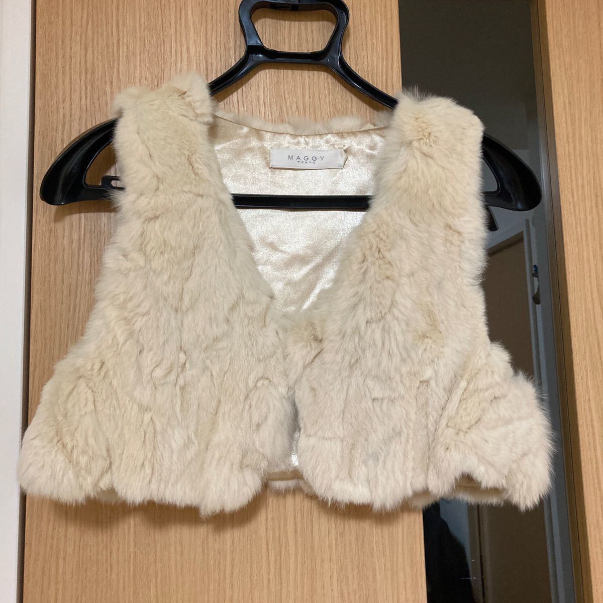 - ファーベスト ボレロ ラビットファー ホック リボン付き ベージュ マギー