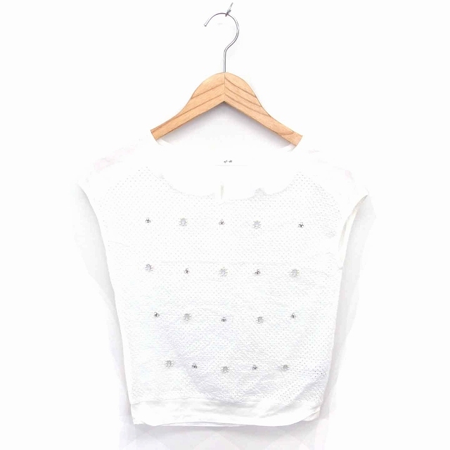- エフデ ef-de カットソー ビジュー ボートネック フレンチスリーブ シフォン 半袖 9 ホワイト 白 /TT14 レディース