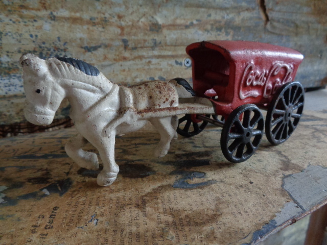 - 【アメリカンアンティークアイアンのCoca-Cola幌馬車】コカ・コーラミニカー古道具カートブリキカー骨董インテリアインダストリアル