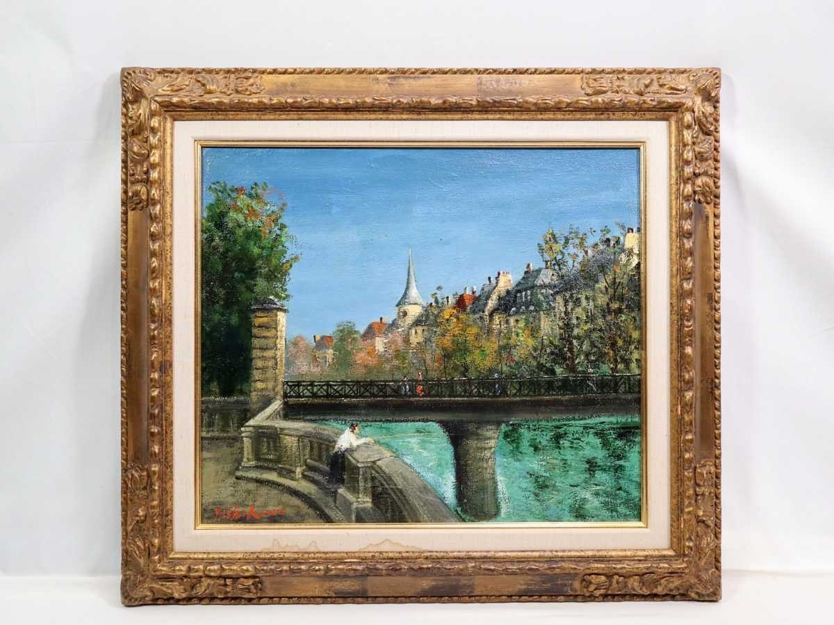 - 真作 吉川康雄 油彩「ストラスブルグ」画寸 F10 大阪府出身 日華美友委員 平賀亀祐に師事 イル川に架かる石橋と河畔沿いの街並み 5486