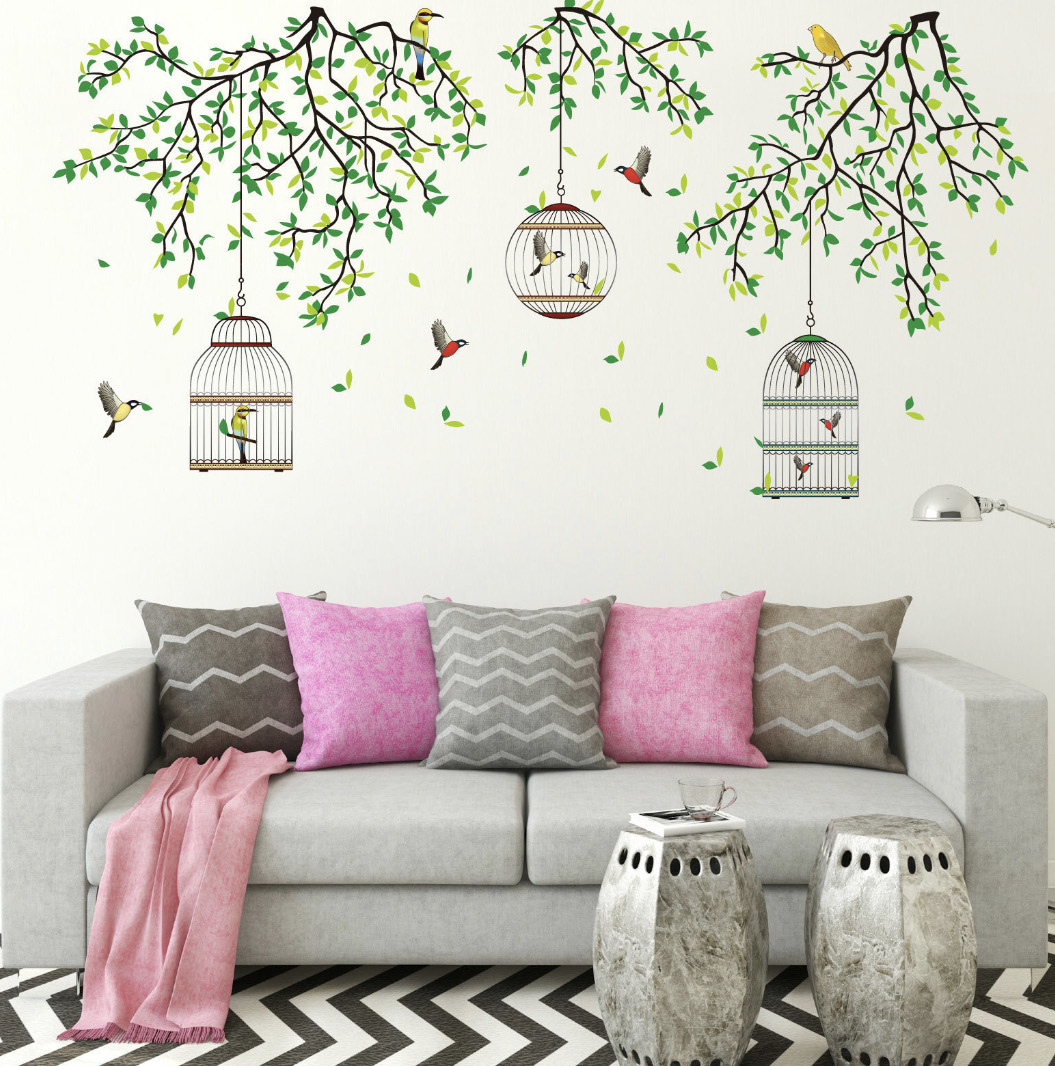 - ウォールステッカー YB073 ガーデン 吊り葉 鳥 ナチュラル 癒す DIY 壁紙 インテリアシート 剥がせる 送料無料