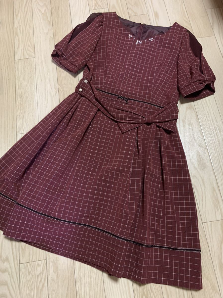 - N029/ワンピース/ワインレッド/柄物/半袖/