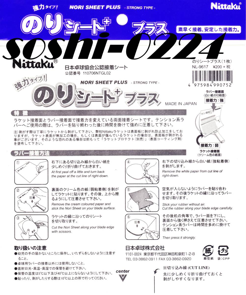 - Nittaku/ニッタク★のりシートプラス★日本製★素早く接着・安定した接着力★OX(スポンジ無し)ラバーの貼り付けに