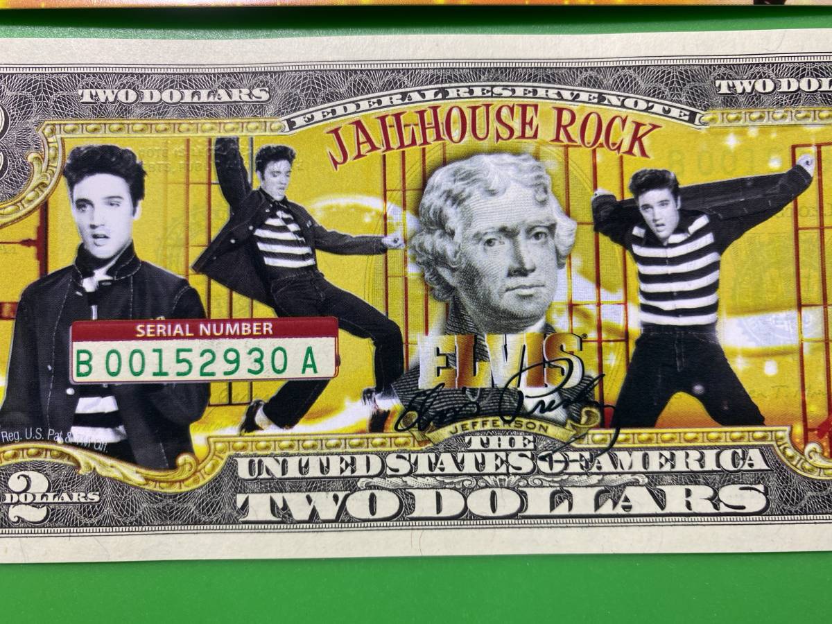 - エルビスプレスリー 2ドル札 アメリカ $2 Elvis Presley ロック Jailhouse Rock ジェイルハウスロック 1960年代 メンフィス 印刷サイン入り