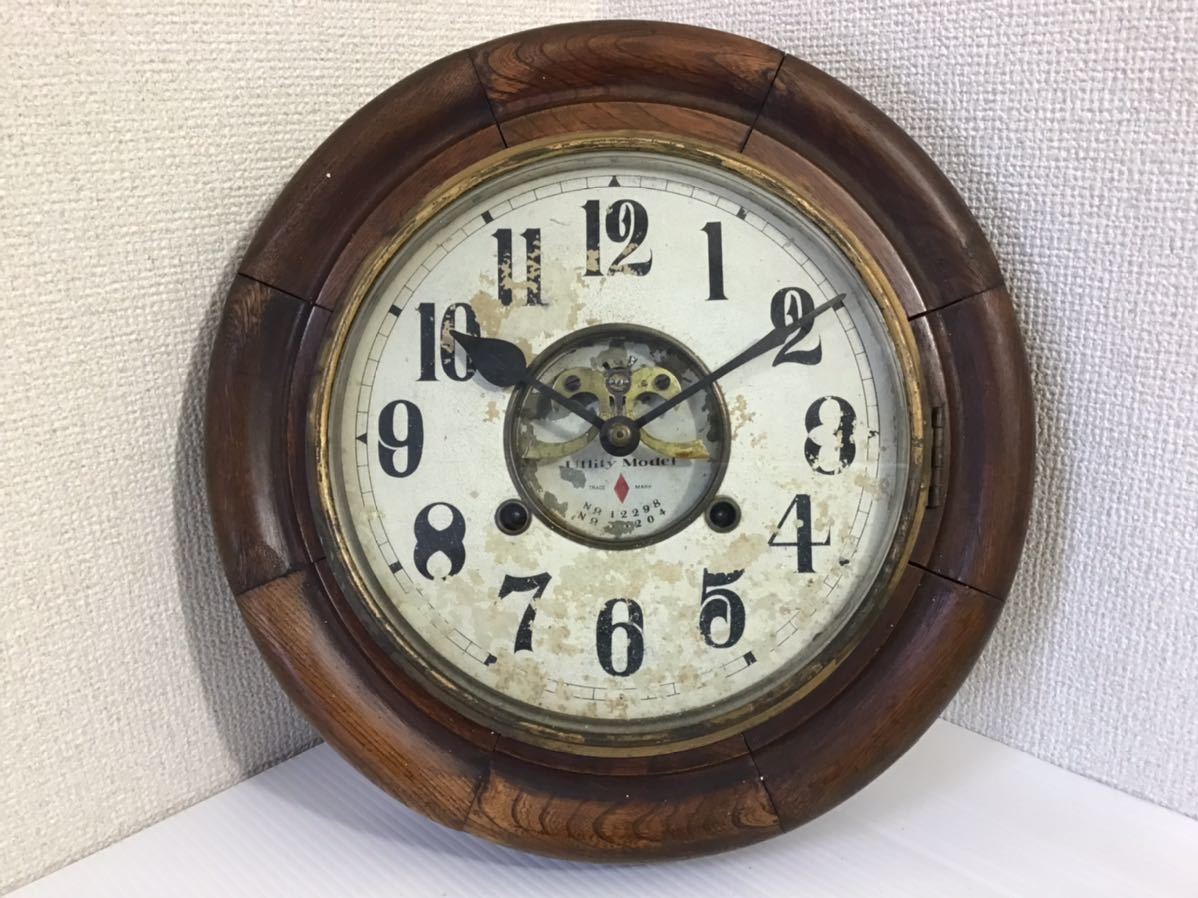 - ★アンティーク★ 掛け時計 Utlity Model オブジェ 大正? 赤菱時代? 丸型 柱時計 レトロ ジャンク品