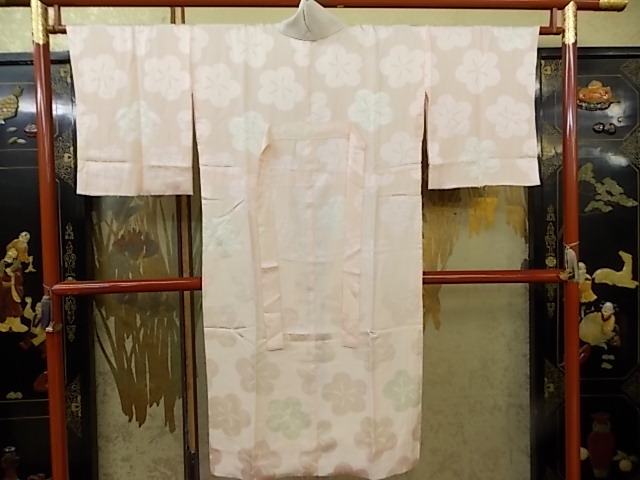 > きもの今昔4442 長襦袢 広衿袷仕立て 正絹最高級綸子地絞り入り淡いピンク色