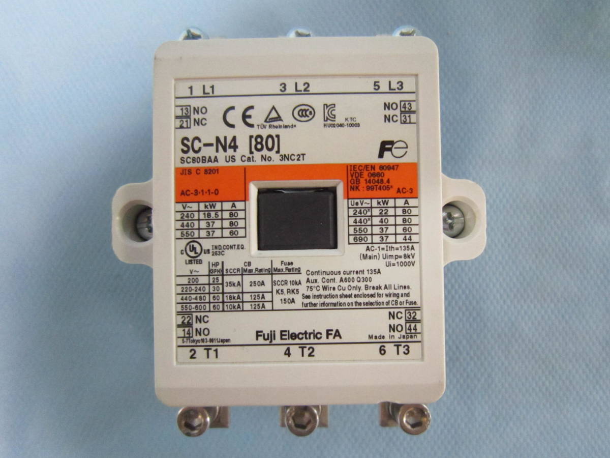 > 富士電機 電磁接触器 マグネットスイッチ SC-N4 (80) コイル100V-110V (接点綺麗) 端子ネジ付