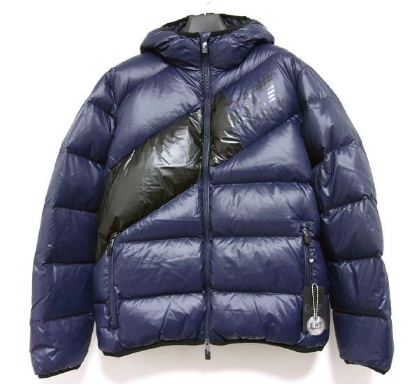 - 新品★EMPORIO ARMANI★エンポリオアルマーニ★斜めロゴ★ダウンジャケット★ネイビー★L★洗える★フード