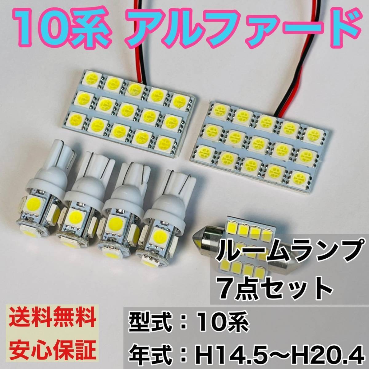 > 10系 アルファード T10 LED ルームランプセット 室内灯 車内灯 読書灯 ウェッジ球 ホワイト 7個セット トヨタ