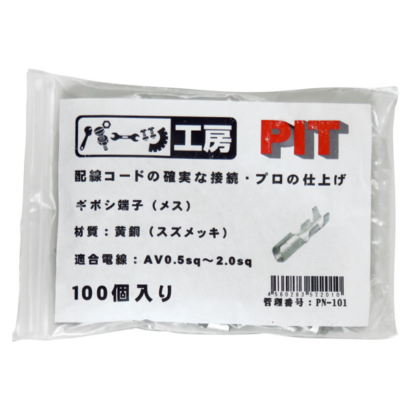 > ギボシ端子 メス 100個入り 黄銅(スズメッキ) AV0.5sq~AV2.0sq スリーブ無し パーツ工房 PN-101 ht