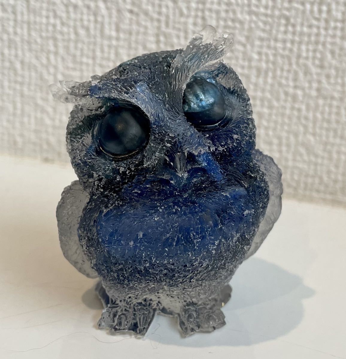 - フクロウのオルゴナイト ブルークォーツ パワーストーン 風水晶 置物インテリア 縁起物 クリスタル 魔除 お守 不苦労 幸運 ラッキー