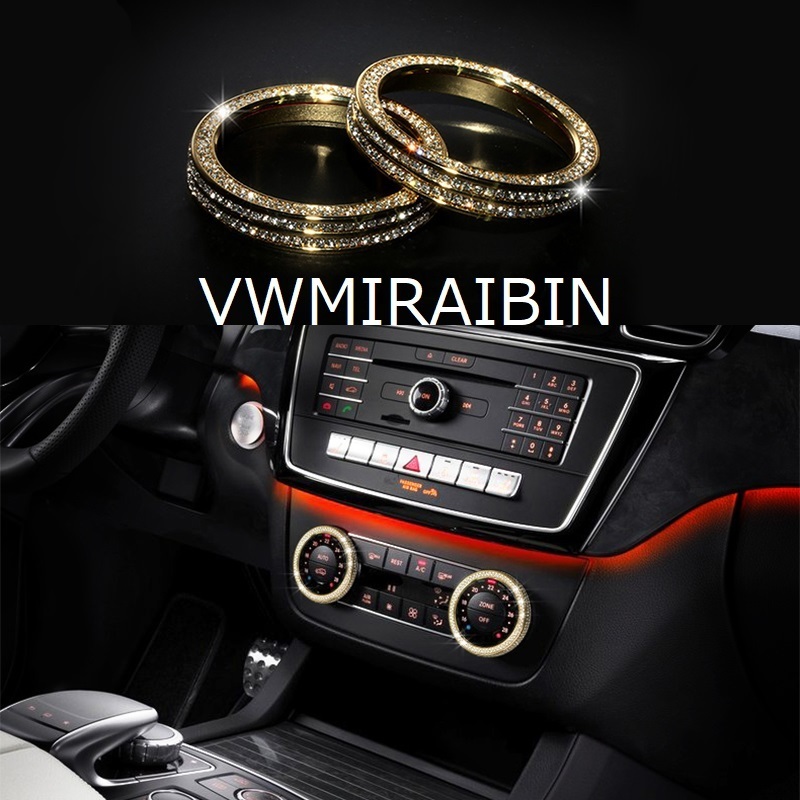 > ベンツ W166X166W204X204W218W463 GLEGLMLCLSSLK SL GLK エアコン リング ダイヤル カバー コンソール AMGなど 2pc クリスタル 金 ゴールド