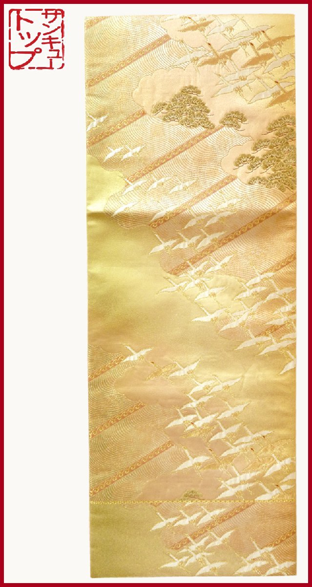 - 【店頭価格10000円の品 在庫処分 大幅値下げ】☆質:39トップ 着物館 帯 891 正絹 袋帯 六通 雲取鶴松文様 中古 お慶びの席に