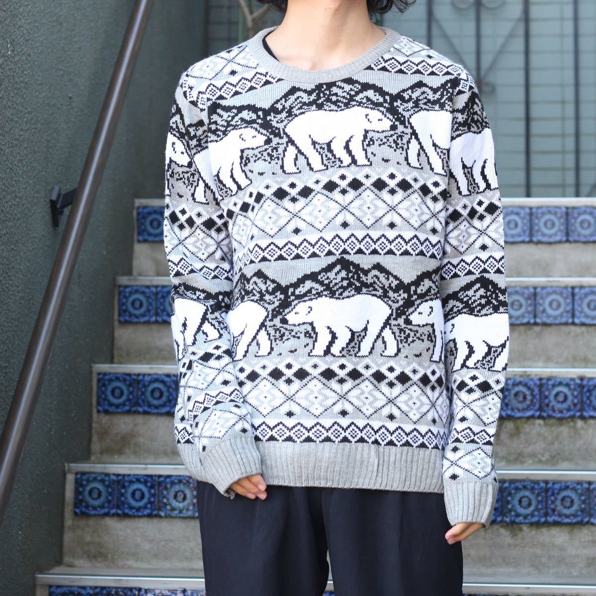 > USA VINTAGE boohoo WHITE BEAR DESIGN NORDIC PATTERNED OVER KNIT/アメリカ古着白くまデザインノルディック柄オーバーニット
