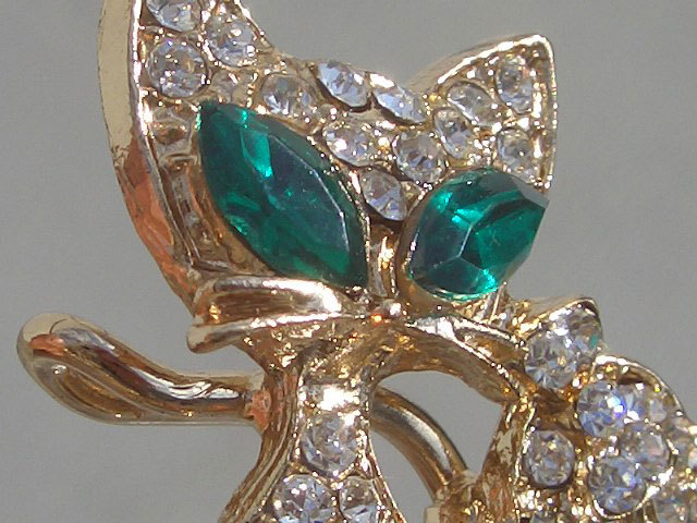 > †ギラギラ輝く シャムネコ 猫 ジルコニア ブローチ♪ 貴女の胸元で素敵に可愛くみゃ♪ お澄ましにゃんこ。デットストック キャッツアイ♂