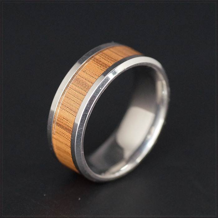 - [RING] WOOD & STEEL レジンコーティング ウッド 木目 模様 & シルバー カラー サイド テーパー デザイン 8mm リング 16号 【送料無料】