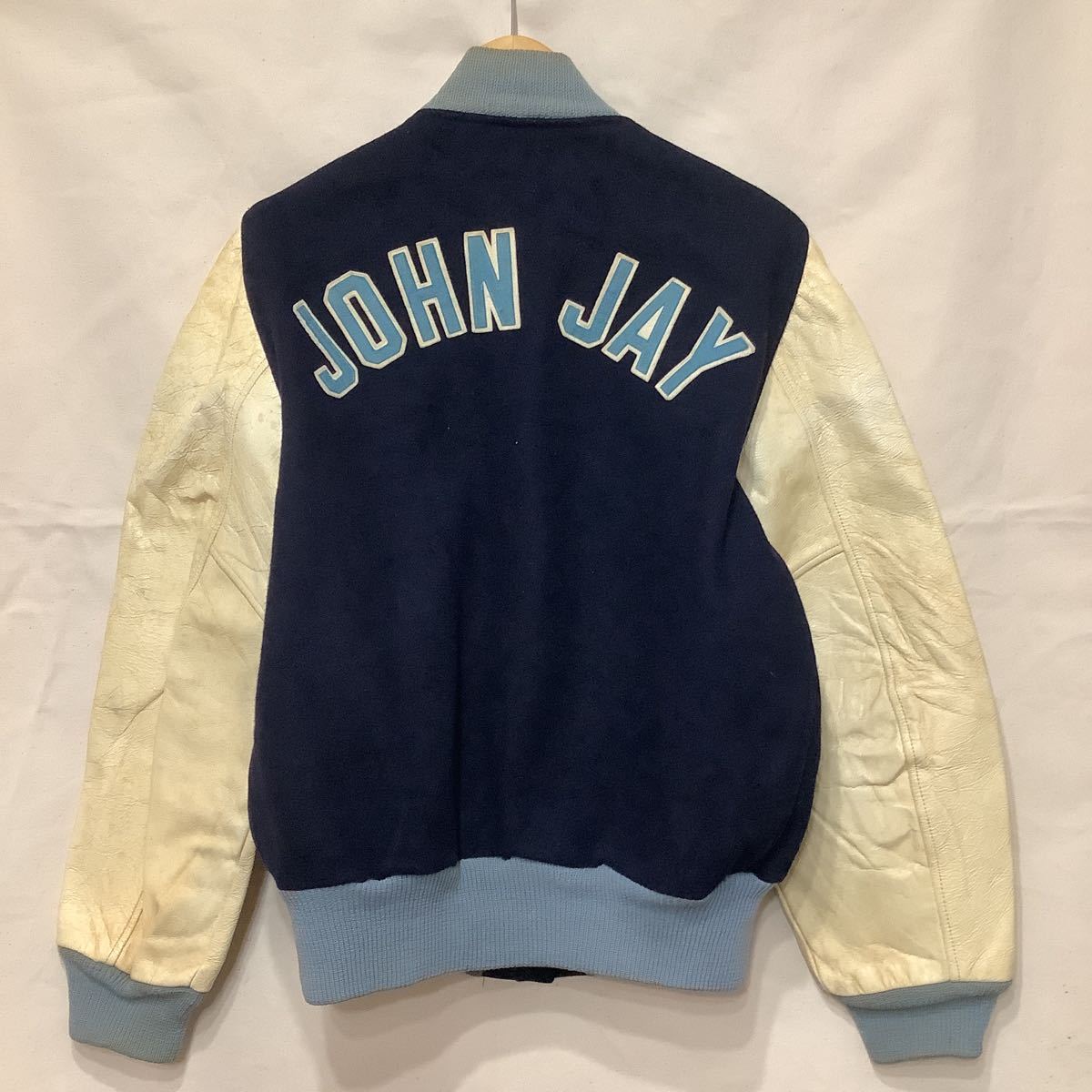 > J90.ビンテージバドウィンスタジャン古着アメカジUSA製アメリカ製フリー&イージー袖革メルトンアメ車バイクハーレーサイズ42