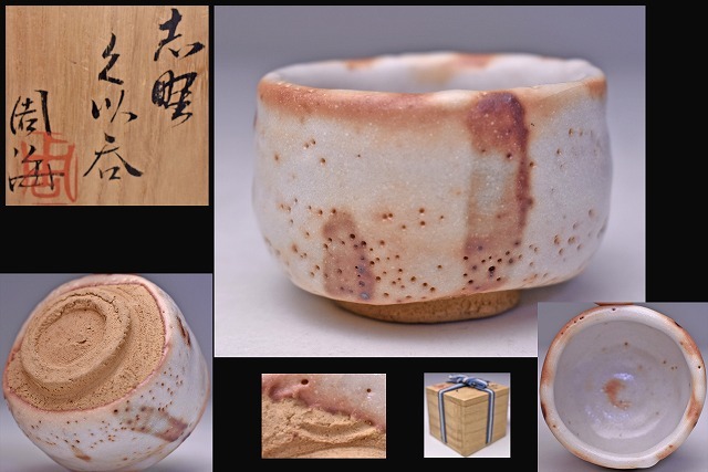 > 各務周海 ★ 志野 ぐい呑 ★ 共箱 ★ 造形良く素朴な絵付に侘感のある逸品 ★ 酒器 絵志野