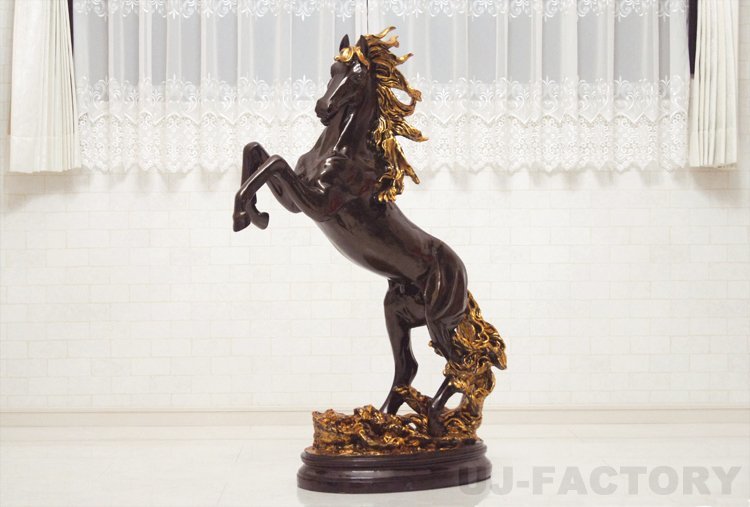 - 【即納!】★風水・縁起物 インテリアにお勧め/全高1030mm♪ 飛躍の象徴 跳ね馬/ダークブラウン