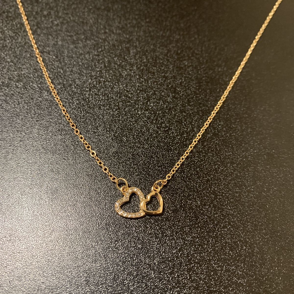 - ダブルハート ラインストーン ネックレス イエローゴールド アジャスター付き