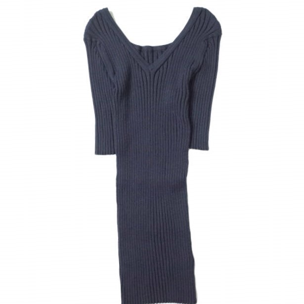 - 6 ROKU BEAUTY&YOUTH ロク RIB SHORT SLEEVE KNIT リブショートスリーブニット 8618-105-0017 Free ネイビー セーター プルオーバー g8017