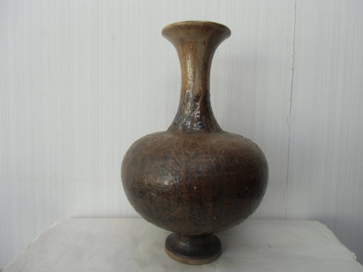 - 大きめ花器 花瓶 壺 高さ36cm 陶印あり インテリア 茶系