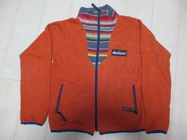 > 新春!春先・インナーとして大活躍!美品&格安!ワイルドシングス WILD THINGS ジャガードジップJKT Mサイズ オレンジレインボー