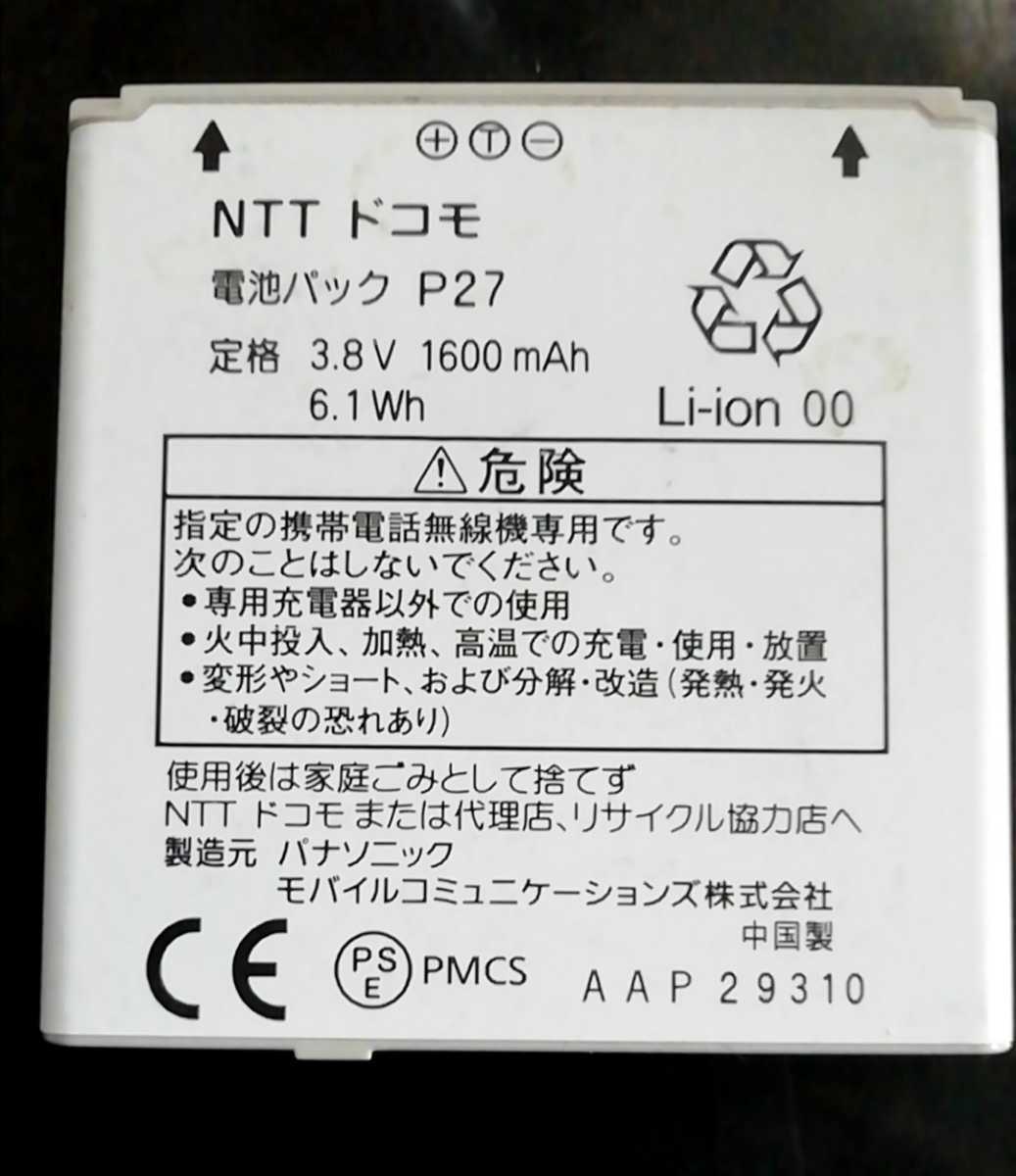 - 【中古・残り1個】NTTドコモP27純正電池パックバッテリー【充電確認済】対応機種(参考)P-06D