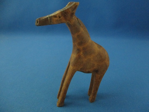 - ★木製 置物 キリン 小さめ 少々汚れあり 高さ10㎝ 横7㎝ tm2301-11-4★