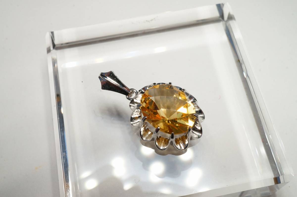 - 【特別即決価格!早い者勝ち!】極上天然黄水晶(シトリントパーズ)オリジナルカット高透明度ペンダント真鍮金具