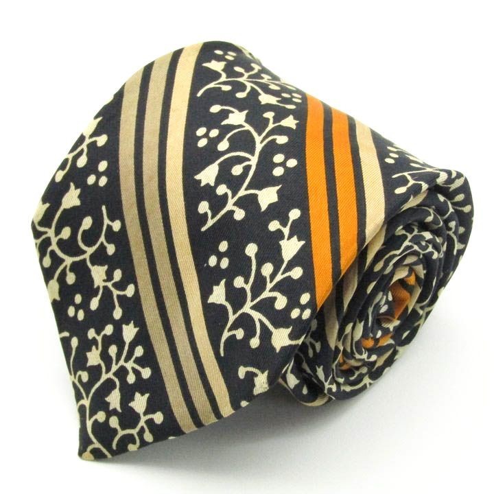 - ランバン 花柄 リバース柄 シルク ー ブランド ネクタイ メンズ ネイビー系 良品LANVIN