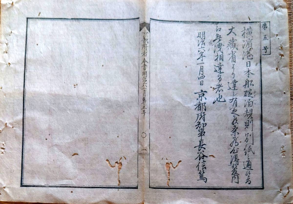 - f23012344〇明治布告布達 横浜港 日本船停泊規則 第1条~第10条 雛形規則 明治6年 京都府府御布令〇和本古書古文書